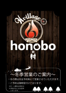 冬季営業のご案内お知らせ / By 村長 / 2022年11月19日 2022年11月19日 冬季営業について honoboの村は「飲食店等感染防止徹底点検済認証店」です。 忘年会など屋外でなら安心して楽しめます♪ BBQ場、キャンプ場はオフシーズンとなります。 honoboの村は休まず営業させていただきます。 ご利用方法は 完全予約制とさせていただきます。 また、予約が無い日、月曜日、火曜日は 原則お休みとさせていただきます。 ご予約は随時、受け付けております!(^^)! お気軽にお電話、WEBにてご予約をお願いいたします。 また、月曜日、火曜日にBBQがやりたいよーの方も お気軽にお電話ください 2022年11月19日